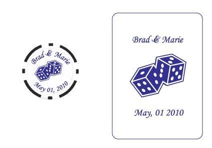 Two Color - Offset or Digitally Printed Two Color Offset Printed One Color Hot Stamped, Offset or Digitally Printed Wedding Playing Card Favors Black and White, Offset Printed Las Vegas Wedding Playing Cards Full Color Digitally Printed Two Color Offset Printed Foil Stamped Wedding Playing Cards Hot Stamped Foil Stamped Full Color Playing Cards and Poker Chips Interlocking Rings Love Doves Wedding Cake Wedding Bells Dice Clinking Glasses Cross Casual Hearts Doves and Bridal Party